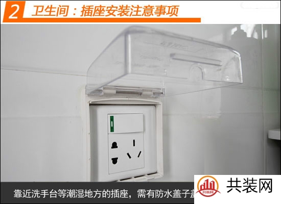 2、插座安裝注意事項 安裝在衛(wèi)生間的插座宜帶開關(guān)和指示燈,如果安裝在潮濕位置的插座,最好在插座表面安裝一個防水的蓋子,避免水汽進入插座內(nèi),引起短路。