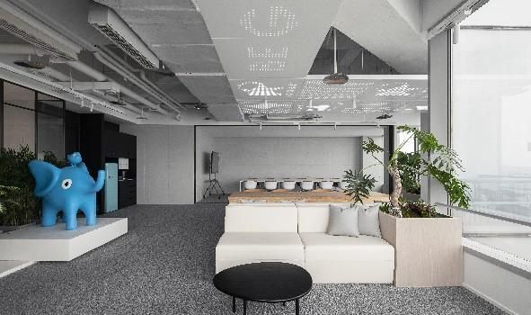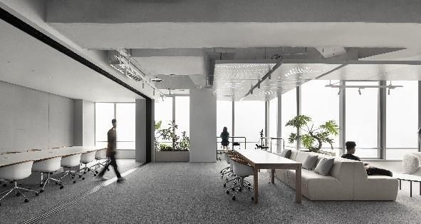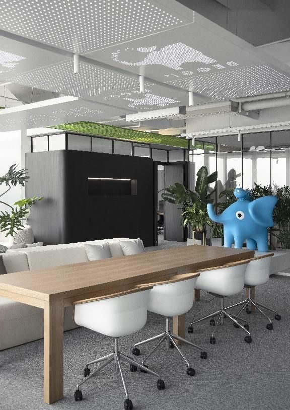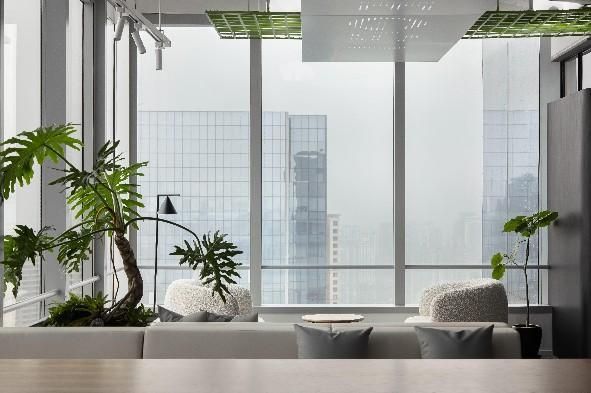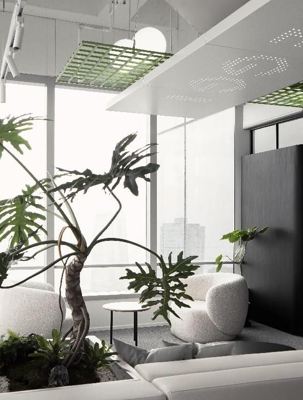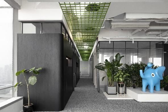空間打造有,城市會(huì)客廳、大象吧、咖啡休閑區(qū)、無(wú)差別開(kāi)放工作區(qū)及各類功能空間,通過(guò)一條貫穿各功能區(qū)的,綠色“棲廊”把各分散的空間串聯(lián)在一起。點(diǎn)綴于各個(gè)角落的綠植,為空間賦予了減壓、放松的氛圍感。