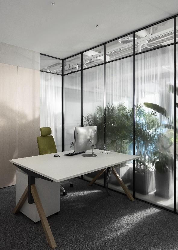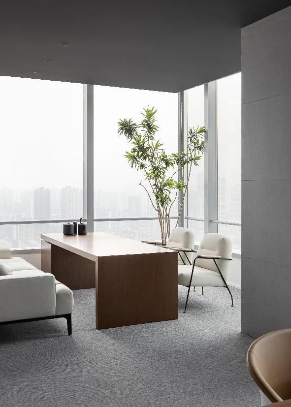 設(shè)計(jì)的構(gòu)想,是想打造一個(gè)現(xiàn)代環(huán)保,空間均質(zhì)、兼具藝術(shù)與高效的辦公場(chǎng)所,所以,從空間布局上,擯棄了格子間的傳統(tǒng)做法,盡量把不必要封閉的空間打開(kāi),讓窗外開(kāi)闊的江景納入室內(nèi)。