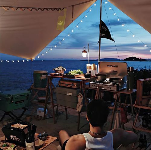 2022年, ?個(gè)全新的休閑度假熱詞——露營(yíng),上了頭條。每當(dāng)?shù)搅酥苣┖图倨冢笥讶飼衤稜I(yíng)的照片越來(lái)越多。當(dāng)疫情阻擋了外出的腳步,年輕人們開(kāi)始玩起了花活——帳篷一頂,戶外折疊椅若干,氛圍感十足的燈光布景,漫天繁星的夜空下瑰麗的篝火與之形成鮮明的顏色對(duì)比……