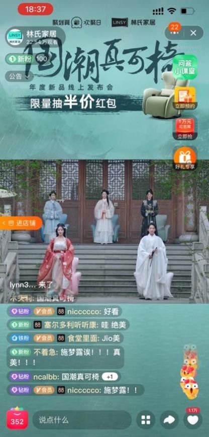 除此之外,林氏家居還用更浪漫的方式和年輕人一起探討國潮新生活方式。 歡聚日活動前,林氏家居攜手漢服圈頂流大咖四月等五大KOL組成“漢服圈 KOL 天團(tuán)”共同演繹古今穿越大片。觀眾們隨著五大頂流穿越到古代,體驗千年前古人的燒香、點茶、掛畫、插花等“雅事”,隨后回到現(xiàn)代,在“國潮真可椅”上圍爐煮茶,休閑玩樂。新時代年輕人的“趣”與古代生活“雅”遙相呼應(yīng),生動詮釋著千年以來,人們對家居的需求,永遠(yuǎn)是滿足更適合自己的,更舒適的生活方式,也傳達(dá)出“國潮真可椅”多元、時尚、百搭的家居特性,凸顯家具背后林氏家居的多元包容。