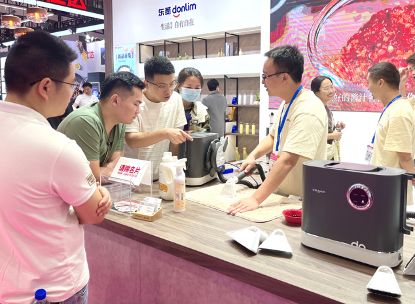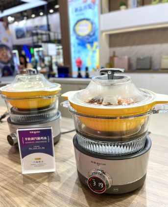 展會期間,東菱邀請了專業(yè)美食達人現(xiàn)場復刻汽鍋雞湯。通過蒸汽鍋的“汽鍋模式”,達人自制兩道夏日時令靚湯:羊肚菌汽鍋雞湯、鮑魚汽鍋排骨湯。利用蒸汽烹飪,食材無需加一滴水,開放式廚房場景設計讓觀眾直觀地看到“蒸汽循環(huán)慢慢凝結成精華湯汁”的過程。
