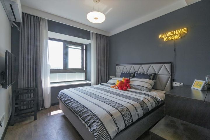 現(xiàn)代簡約風(fēng)更講究空間布局,色彩搭配,既要色彩呼應(yīng),又要整體和諧,很考驗(yàn)設(shè)計(jì)師的審美和設(shè)計(jì)素養(yǎng)。 厭倦了華麗的裝飾,只想簡單地享受美食而已,那么如此般簡約的餐廳恰好適合。充滿藝術(shù)氛圍的掛畫打破沉悶與單調(diào),簡單大氣的餐桌搭配鮮艷跳躍的色彩,令每一次的就餐氛圍都仿佛置身藝術(shù)展身旁,不論是餐食還是藝術(shù)品,都值得回味。 臥室里,素色的搭配營造一份靜謐,一切都恰到好處地展現(xiàn)業(yè)主內(nèi)心對安靜、舒心的向往,每日清晨坐于榻上即可思考當(dāng)日穿搭,簡單的改變即能提升幸福感。