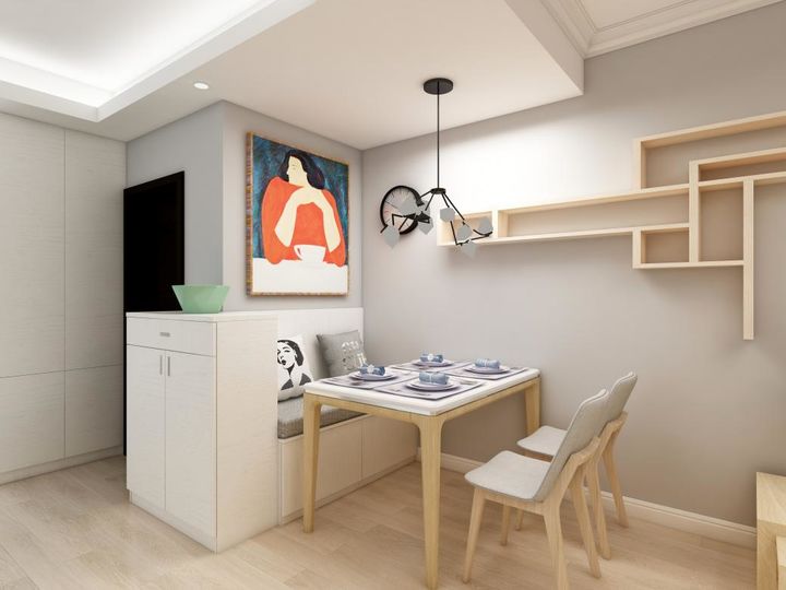從家具上來說,日式家具相對低矮,不論沙發(fā)或是床,因?yàn)榈椭匦牡募揖邥尶臻g顯得通透開闊,這也是為什么小戶型會推薦日式風(fēng),而北歐風(fēng)家具相對高挑。從色彩上來說,日式風(fēng)的配色比較柔和,以淺色系為主,而北歐風(fēng)的配色飽會比較高,會有十分亮眼的顏色,所以日式風(fēng)和北歐風(fēng)還是有很大的差別的。 原木地板,白色墻面,干凈,簡潔,木格增加了線條感,讓空間得到舒緩,使得原有的空間更加精致。餐桌上簡約實(shí)用的餐具,背景墻上是色彩明亮的抽象人物裝飾畫,布置在這個簡約風(fēng)的空間下,顯得格外的自然舒適而優(yōu)雅大氣。 在傳統(tǒng)和室中,日本人會在榻榻米上席地而坐,這種文化同樣也保留至今。榻榻米很適合用于次臥,作為小戶型的多功能空間,榻榻米可是兼具儲物、客臥、茶室、娛樂各種功能于一身,簡簡單單又溫暖柔軟。 3、北歐風(fēng)