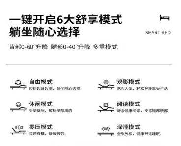 ??功能強(qiáng)大,雖然都是在床上,但不同場景的功能卻大不相同,如何能夠解決多體態(tài)的人體工程學(xué)問題,誼瑞推出的六大模式智能體驗(yàn),讓消費(fèi)者在不同場景享受不同貼心服務(wù): ??模式1:休閑模式:抬腿舒壓,放松腿部肌肉; ??模式2:觀影模式:舒緩疲勞,護(hù)腰享生活 ??模式3:閱讀模式:支撐腿部腰部,健康閱讀 ??模式4:零壓模式:腿高心臟,減少脊椎承壓 ??模式5:深睡模式:貼合人七區(qū),延長深睡時(shí)間 ??模式6:自由模式:輕松起背起腿,躺坐隨心選擇
