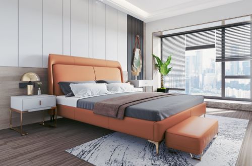 ??精選頭層牛皮,觸感細膩,碳素鋼腳,美觀耐用 ??坦白講,誼瑞“菁選-破曉”智能真皮電動床刷新了絕大部分人對這類產(chǎn)品的認知,先來說說它選取的材質(zhì),以進口頭層牛皮為主,帶有天然紋理的優(yōu)質(zhì)皮料,質(zhì)感出眾。用手輕輕一摸,能感受到牛皮紋理的細膩,搭配經(jīng)典時尚的愛馬仕橙,這款電動床能巧妙融入輕奢現(xiàn)代風臥室。 ??誼瑞“菁選-破曉”智能真皮電動床的床頭增加了柔軟靠包,當靠在上面時,靠包剛好能貼合頭頸的弧度,可見,它的靠包設計符合人體工學原理。
