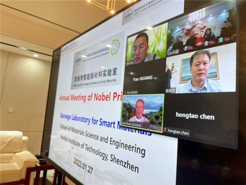 | 2022年1月27日,在中國傳統(tǒng)節(jié)日春節(jié)來臨之際,一場跨國的線上視頻會議在長沙、深圳,斯特拉斯堡(法國)三地舉行,2016年諾貝爾化學獎得主讓·皮埃爾·索維奇教授,哈爾濱工業(yè)大學(深圳校區(qū))材料學院執(zhí)行院長、索維奇智能新材料實驗室主任李明雨教授,哈爾濱工業(yè)大學(深圳校區(qū))馬星教授、張嘉恒教授,卡頌技術發(fā)明人徐海教授、卡頌智能壁材董事長曾廣斌、總經(jīng)理周立連三方代表共21人參加線上會議,另外會議還特邀長沙市住建局陳義芳處長出席,共同見證索維奇智能新材料實驗室的結(jié)出的豐碩技術成果。