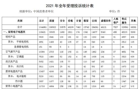 | ??日前,中國消費(fèi)者協(xié)會(huì)公布了全國消協(xié)組織受理投訴情況的統(tǒng)計(jì)結(jié)果?!夺斂萍肌纷⒁獾?,根據(jù)2021年商品大類投訴數(shù)據(jù),家用電子電器類、日用商品類、食品類、服裝鞋帽類和交通工具類投訴量居前五位。其中,家用電子電器類投訴量達(dá)到10.8萬件,位居投訴榜首位。 ??有媒體注意到,消協(xié)統(tǒng)計(jì)的家用電子電器類產(chǎn)品,包括了相機(jī)、手機(jī)、PC,但即便去除這些品類,單純家電類產(chǎn)品的投訴也接近5萬件,規(guī)模十分龐大。 ??一般認(rèn)為,家電產(chǎn)業(yè)經(jīng)過四十多年的發(fā)展,已經(jīng)非常成熟。無論是產(chǎn)品質(zhì)量還是服務(wù)水平,都達(dá)到了一個(gè)成熟期。理論上說,用戶投訴量不應(yīng)該居高不下。但實(shí)際情況卻是,家電類產(chǎn)品在歷年消協(xié)投訴榜上的位置都十分靠前,消費(fèi)者的滿意度并不高。 ? 此外,在家用電子電器類產(chǎn)品投訴內(nèi)容中,質(zhì)量投訴和售后服務(wù)投訴最多,分別為3.1萬件和4.5萬件,占比分別為28.7%和41.7%, 超過7成的投訴指向了質(zhì)量和售后服務(wù)。