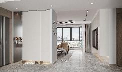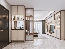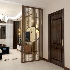 2.進(jìn)門見餐廳 如果進(jìn)門是餐廳的話,可以將玄關(guān)柜和餐邊柜設(shè)計(jì)為一體式組合柜,L型設(shè)計(jì)既化解了轉(zhuǎn)角墻體的尷尬,也充分利用了空間,解決了進(jìn)門空間的收納難題,組合式柜體風(fēng)格統(tǒng)一,還增強(qiáng)了美觀性。定時(shí)餐邊柜時(shí),柜體中部最好挖空,可以用來(lái)當(dāng)水吧,放置水杯、水壺等雜物。 二、隔斷 進(jìn)門見廳總是有“一覽無(wú)余”的尷尬,主人的隱私也得不到保障,即使戶型沒有自帶玄關(guān),很多人也會(huì)利用各種方式進(jìn)行隔斷。 1.普通隔斷 普通隔斷性價(jià)比高,安裝也很方便,基本上不會(huì)受戶型影響,是很多家庭的第一選擇。普通隔斷一般分為木質(zhì)隔斷、鐵藝隔斷和玻璃隔斷,可以根據(jù)不同的家裝風(fēng)格選擇不同材質(zhì)的隔斷,美觀大氣,也不會(huì)影響室內(nèi)采光。