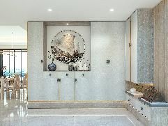 | 開門見廳沒有玄關(guān),不僅會(huì)讓入戶雜物堆積,到處亂糟糟,也會(huì)讓這個(gè)戶型的隱私性變差,居住者得不到安全感。根據(jù)戶型的不同,我們可以通過隔斷或定制柜體的方式來(lái)遮蔽視線、收納鞋物,打造一個(gè)美觀實(shí)用又安全感十足的入戶空間,從而給人舒適的居住體驗(yàn)。 一、收納 進(jìn)門就見廳,沒有任何置物處的話,空間就會(huì)變得雜亂無(wú)章,各種鞋物、雨傘亂作一團(tuán),日常出行非常不便,我們可以通過定制柜體來(lái)改善這種情況。 1.進(jìn)門見客廳 進(jìn)門空間為走廊型且直面客廳的話,最好的收納方式就是內(nèi)嵌玄關(guān)柜(非承重墻)。內(nèi)嵌設(shè)計(jì)不占據(jù)空間,半開放式柜體藏露兼?zhèn)?輕松收納四季鞋物,開放格可以用來(lái)放置鑰匙、雨傘等小件物品,也可以擺放藝術(shù)品裝飾空間,在玄關(guān)處就給人留下良好的第一印象。