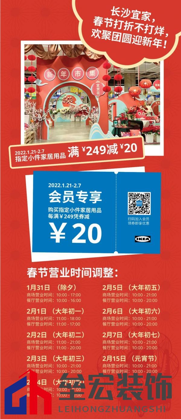 春節(jié)期間,長沙宜家打折不打烊,還有更多驚喜活動等你來參與。2022.1.21-2.7,掃碼加入宜家會員,即可享受購買指定家居用品,每滿249元減20元優(yōu)惠活動。