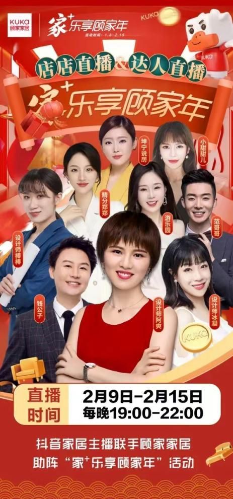 ??看到這里,讀者朋友或許會發(fā)現(xiàn),和大多數(shù)品牌的春節(jié)營銷輸出相比,比如歐派家居旗下,歐鉑尼TVC《一門一世界》主打“木門品類”,歐派櫥柜以TVC《灶神》主打廚房煥新等等。 ??而顧家家居則將旗下不同品類統(tǒng)一歸整,放到了統(tǒng)一的品牌主題之下,實現(xiàn)了更加聚焦和高效的品牌營銷閉環(huán)。 ??在完成內(nèi)容活動的造勢和引流之后,顧家家居以品牌自播的形式聯(lián)手10位抖音頭部家居主播,利用春節(jié)黃金時間搶先進行了53場直播,收獲了開年的首場勝利,并形成完整的營銷閉環(huán)。