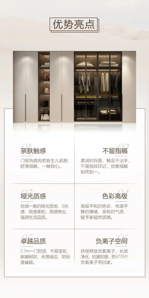 備注: “負(fù)離子空間”特性依據(jù)國家建筑材料測試中心檢測結(jié)果所得,在愛閣工房全屋定制安裝柜體內(nèi)檢測空氣負(fù)離子濃度≥3000 ions/cm3;實際使用會因環(huán)境變化而有所不同,以實際為準(zhǔn)。 |