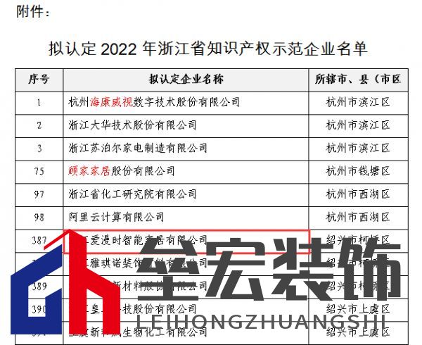 | “高新尖”的知識(shí)產(chǎn)權(quán),是企業(yè)核心競(jìng)爭(zhēng)力的組成,近日,浙江省市場(chǎng)監(jiān)督管理局公布了“2022年浙江省知識(shí)產(chǎn)權(quán)示范企業(yè)”擬推薦名單,浙江愛漫時(shí)智能家居有限公司入選。