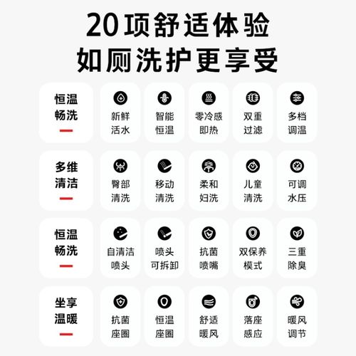 除了深度除臭需求,面對(duì)不同家庭成員的其他不同需求,“除臭卷王”配置了20多項(xiàng)完備的功能應(yīng)對(duì),例如老年人如廁后擦拭難,擦拭不干凈引發(fā)的一系列健康問(wèn)題,“除臭卷王”對(duì)應(yīng)擁有落座感應(yīng)、兩重過(guò)濾新鮮活水、自潔抗菌噴嘴等高科技功能,操作簡(jiǎn)單易學(xué),比較人性化。