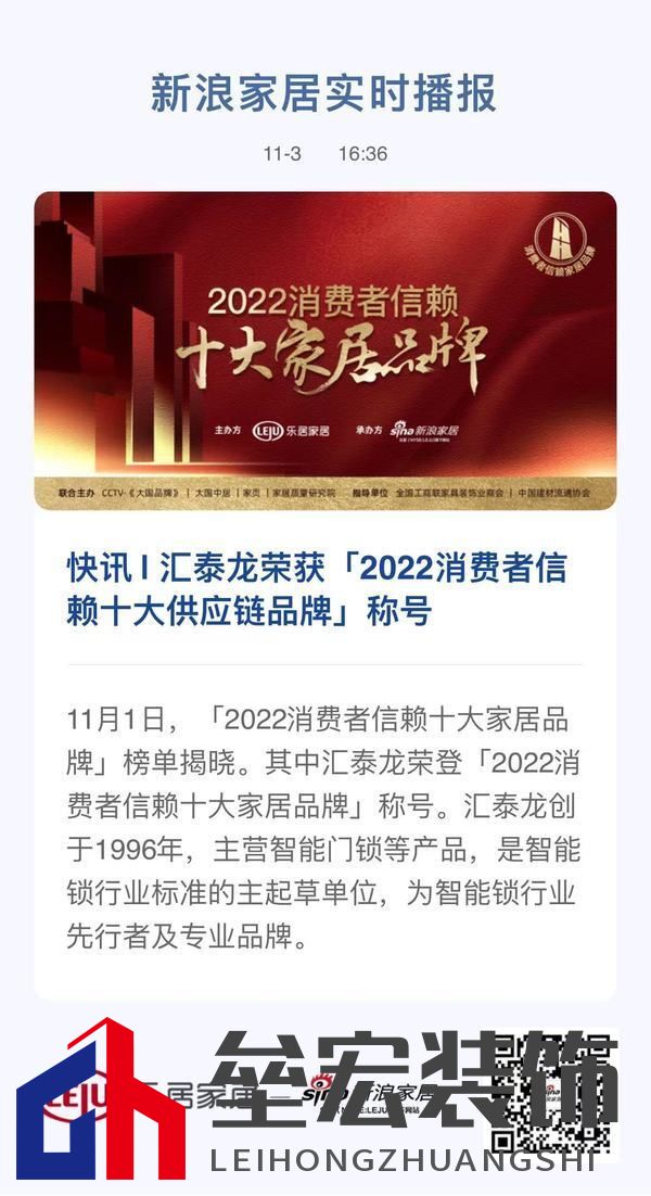??11月1日,「2022消費者信賴十大家居品牌」榜單揭曉。其中匯泰龍榮登「2022消費者信賴十大家居品牌」稱號。匯泰龍創(chuàng)于1996年,主營智能門鎖等產品,是智能鎖行業(yè)標準的主起草單位,為智能鎖行業(yè)先行者及專業(yè)品牌。