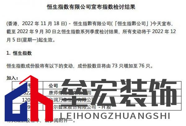 | 恒生指數(shù)公司11月18日發(fā)布季檢結(jié)果,恒生指數(shù)成份股將由73只增加至76只,海爾智家、華潤(rùn)萬(wàn)象生活和康師傅控股3只股票獲納入,所有變動(dòng)將于2022年12月5日(星期一)起生效。同時(shí),海爾智家還被納入恒生滬深港通中國(guó)企業(yè)指數(shù)。