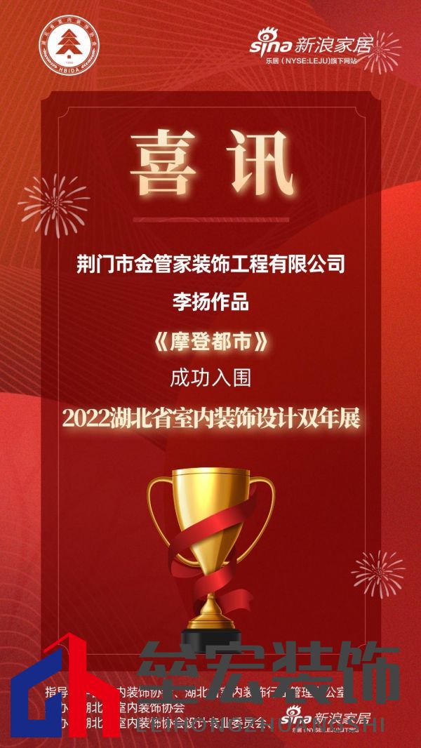 | 綠色設(shè)計(jì),大美荊楚,由中國(guó)室內(nèi)裝飾協(xié)會(huì)、湖北省室內(nèi)裝飾行業(yè)管理辦公室的指導(dǎo),湖北省室內(nèi)裝飾協(xié)會(huì)主辦的2022湖北室內(nèi)裝飾設(shè)計(jì)雙年展,在室內(nèi)裝飾設(shè)計(jì)行業(yè)打造了一場(chǎng)全省范圍的設(shè)計(jì)盛會(huì),首輪評(píng)選百余套作品,70余套優(yōu)秀作品成功入圍。 在智能化、人文化、健康舒適化的時(shí)代趨勢(shì)下,雙年展的舉辦,以新時(shí)代、新理念、新創(chuàng)意,提升室內(nèi)裝飾設(shè)計(jì)水平,為設(shè)計(jì)師進(jìn)行品牌賦能,弘揚(yáng)荊楚設(shè)計(jì)精神與風(fēng)貌。針對(duì)這項(xiàng)有權(quán)威性、有知名度的專業(yè)賽事,武漢各大裝飾公司及設(shè)計(jì)工作室積極響應(yīng),因?yàn)閰⒓与p年展對(duì)設(shè)計(jì)師開拓視野、加強(qiáng)行業(yè)交流、提升專業(yè)水平具有重要意義。 雙年展專家組評(píng)委秉承公正公平、優(yōu)中選優(yōu)的原則,經(jīng)過(guò)層層篩選,初評(píng)結(jié)果現(xiàn)已出爐。 設(shè)計(jì)滋養(yǎng)生活,生活反哺設(shè)計(jì),優(yōu)秀的作品,總是離不開對(duì)藝術(shù)矢志不移的熱情與探索,以及對(duì)美與愛的深度感知,雙年展入圍作品均對(duì)此進(jìn)行了完美的詮釋。 荊門市金管家裝飾工程有限公司設(shè)計(jì)師李揚(yáng)原創(chuàng)作品《摩登都市》,成功入圍2022湖北省室內(nèi)裝飾設(shè)計(jì)雙年展,以獨(dú)特的設(shè)計(jì)風(fēng)格,和優(yōu)秀的設(shè)計(jì)能力,展示設(shè)計(jì)理念和創(chuàng)意。