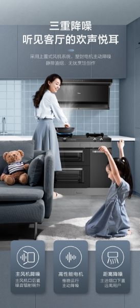 此時(shí),美的新靜吸煙機(jī)X2S化身武林高手,以“金鐘罩”技能隔絕噪音,一招擊破,讓噪音退!退!退!