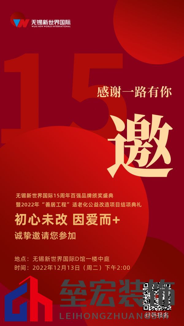 【活動(dòng)預(yù)告】值此年終之際,為表彰和鼓勵(lì)先進(jìn),提高市場(chǎng)活力!12月13日下午2:00,無(wú)錫新世界國(guó)際15周年百?gòu)?qiáng)品牌頒獎(jiǎng)盛典暨2022年“善居工程”&“頤居江溪”適老化公益改造項(xiàng)目結(jié)項(xiàng)典禮將在無(wú)錫新世界國(guó)際家居建材城二期·精品建材館一樓舉辦,誠(chéng)摯的邀請(qǐng)您參加~期待您的關(guān)注和蒞臨,新浪家居將持續(xù)報(bào)道后續(xù)訪談內(nèi)容及頒獎(jiǎng)盛況。 |