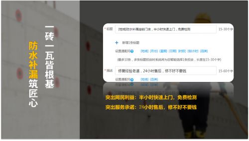 ??長期以來,國內(nèi)防水行業(yè)集中度較低、市場較為分散,呈現(xiàn)“大行業(yè)、小企業(yè)”現(xiàn)象。面對良莠不齊的狀況,雨昂依托一站式服務(wù)能力,突破價格優(yōu)勢,在落地頁上進行“免費上門”、“十年質(zhì)?!钡某兄Z,結(jié)合人性,突出服務(wù)與售后水平。用靠譜有質(zhì)量的施工讓消費者放心,用透明有保障的服務(wù)讓消費者省心。 ??日均分發(fā)150億,影響5億主流消費人群,360信息流廣告幫助雨昂強化用戶認知,推動決策落地。經(jīng)過賬戶優(yōu)化,實現(xiàn)轉(zhuǎn)化量提升120%,點擊量提升257.5%,點擊率提升了60%。雨昂與360的攜手,也讓企業(yè)樹立起可信賴感,筑起一道堅實的品質(zhì)城墻,推動行業(yè)的規(guī)范良性發(fā)展。 ??一磚一瓦皆根基,防水維修筑匠心。通過雨昂的信息流廣告投放案例,360也為防水維修行業(yè)貢獻了可復(fù)制的成功經(jīng)驗:結(jié)合行業(yè)背景,從用戶的實際困擾和需求出發(fā),抓住預(yù)估點擊率、預(yù)估轉(zhuǎn)化率和轉(zhuǎn)化出價三大要素。人群方面,聚焦行業(yè)與業(yè)務(wù)相關(guān)人群;創(chuàng)意方面,抓住受眾心理,突出用戶利益點;落地頁方面,突出產(chǎn)品賣點,縮短轉(zhuǎn)化路徑。 |