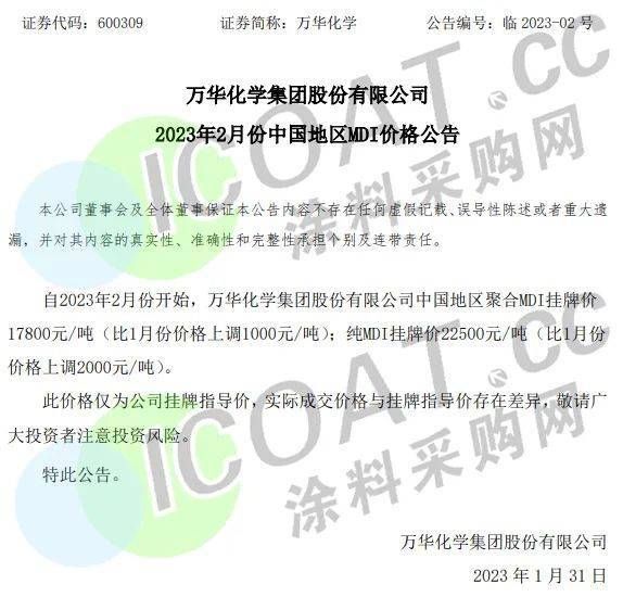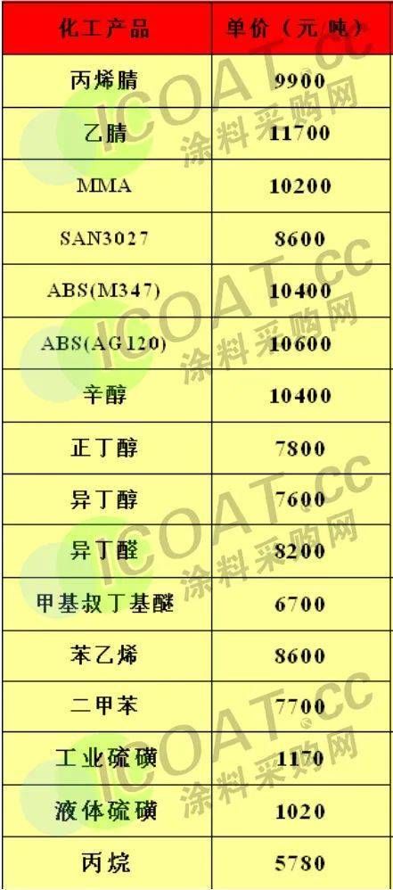 | 據(jù)涂料采購網(wǎng)了解,乳液產(chǎn)業(yè)鏈上的甲苯、二甲苯、丙二醇、乙二醇二醚、苯乙烯等均出現(xiàn)價(jià)格上漲的情況,最高上漲超過10%;樹脂產(chǎn)業(yè)鏈上的液體環(huán)氧樹脂、新戊二醇均有上漲,雙酚A也在近幾日以噸價(jià)上漲百元的速度迎頭趕上;鈦白粉行業(yè)已有龍頭企業(yè)報(bào)價(jià)上調(diào),廠家當(dāng)前仍處于檢修中,行業(yè)供應(yīng)小幅收緊。2023年,在原材料價(jià)格上漲的趨勢(shì)之下,涂料企業(yè)的發(fā)展重點(diǎn)將會(huì)放在降本增效方面。具體原材料情況整合如下: 近日,萬華化學(xué)發(fā)布公告,自2023年2月份開始,公司中國(guó)地區(qū)聚合MDI掛牌價(jià)17800元/噸 (比1月份價(jià)格上調(diào)1000元/噸); 純MDI掛牌價(jià)22500元/噸 (比1月份價(jià)格上調(diào)2000元/噸)。  而在此前, 巴斯夫宣布對(duì)東盟和南亞地區(qū)的MDI基礎(chǔ)產(chǎn)品進(jìn)行漲價(jià), 漲價(jià)幅度為300美元/噸(約合人民幣2026元/噸),即日起生效,這也揭開了近期MDI產(chǎn)業(yè)的上漲序幕。  據(jù)公開數(shù)據(jù),印度地區(qū)目前已有MDI廠家對(duì)聚合MDI報(bào)盤上調(diào)至1850美元/噸,相較于中國(guó)農(nóng)歷新年前的1700美元/噸上漲150美元/噸。 萬華、利華益、華魯恒升等龍頭領(lǐng)漲,40多種化工品價(jià)格調(diào)漲! 春節(jié)之后剛剛開工,化工產(chǎn)業(yè)也在一片呼聲中開始拉漲,40多種化工品價(jià)格上漲。 丁二烯目前報(bào)價(jià)8845元/噸,較月初報(bào)價(jià)上漲1603.75元/噸,漲幅22.15%; 異丁醛目前報(bào)價(jià)7933.33元/噸,較月初報(bào)價(jià)上漲1366.66元/噸,漲幅20.81%; 丙烷目前報(bào)價(jià)6137.5元/噸,較月初報(bào)價(jià)上漲1055元/噸,漲幅20.76%; MIBK目前報(bào)價(jià)17733.33元/噸,較月初報(bào)價(jià)上漲2966.66元/噸,漲幅20.09%; 1,4-丁二醇目前報(bào)價(jià)11290元/噸,較月初報(bào)價(jià)上漲1510元/噸,漲幅15.44%; 甲苯目前報(bào)價(jià)6590元/噸,較月初報(bào)價(jià)上漲670元/噸,漲幅11.32%; 己內(nèi)酰胺目前報(bào)價(jià)11966.67元/噸,較月初報(bào)價(jià)上漲900元/噸,漲幅8.13%; 加氫苯目前報(bào)價(jià)7100元/噸,較月初報(bào)價(jià)上漲533.33元/噸,漲幅8.12%; 純苯目前報(bào)價(jià)7015.5元/噸,較月初報(bào)價(jià)上漲483.33元/噸,漲幅7.40%; PX目前報(bào)價(jià)8000元/噸,較月初報(bào)價(jià)上漲550元/噸,漲幅7.38%; 二甲苯(溶劑級(jí))目前報(bào)價(jià)7375元/噸,較月初報(bào)價(jià)上漲500元/噸,漲幅7.27%; 苯乙烯目前報(bào)價(jià)8516.67元/噸,較月初報(bào)價(jià)上漲516.67元/噸,漲幅6.46%; 丙二醇目前報(bào)價(jià)7866.67元/噸,較月初報(bào)價(jià)上漲466.67元/噸,漲幅6.31%; 三氯甲烷目前報(bào)價(jià)2400元/噸,較月初報(bào)價(jià)上漲137.5元/噸,漲幅6.08%; 環(huán)己酮目前報(bào)價(jià)9690元/噸,較月初報(bào)價(jià)上漲470元/噸,漲幅5.10%; 碳酸二甲酯目前報(bào)價(jià)4900元/噸,較月初報(bào)價(jià)上漲233.33元/噸,漲幅5.00%。 2023年1月部分化工品漲價(jià)榜 (單位:元/噸)  (以上數(shù)據(jù)來源于涂料采購網(wǎng)信息中心,如有差池請(qǐng)以實(shí)際數(shù)據(jù)為準(zhǔn)?。?/p> 除此之外,多家龍頭化工企業(yè)的報(bào)價(jià)單顯示,目前的單噸報(bào)價(jià)已經(jīng)比年初上漲了近千元。部分在1月價(jià)格維穩(wěn)甚至下滑的化工品也在月末出現(xiàn)了上漲的苗頭,似乎要抓住開工的利好時(shí)機(jī),達(dá)成逆勢(shì)翻身的目的。 利華益集團(tuán)報(bào)價(jià)表顯示,與年初價(jià)格相比,丙烯腈上漲400元/噸,MMA上漲100元/噸,辛醇上漲900元/噸,異丁醇上漲200元/噸,異丁醛上漲200元/噸,甲基叔丁基醚上漲100元/噸,苯乙烯上漲500元/噸,丙烷上漲780元/噸。