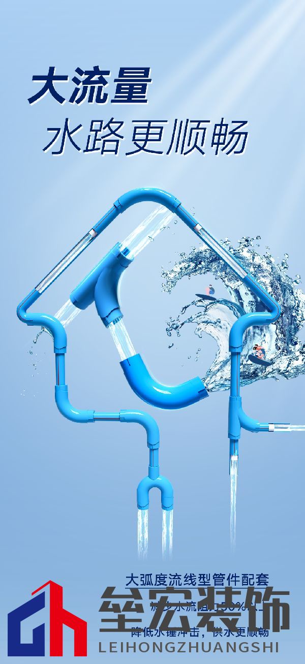 ??大流量水路更順暢 ??聯(lián)塑家裝藍(lán)凈瓷芯系列雙色PP-R給水管 ??大弧度流線型管件配套 ??減少水流阻力50%以上 ??降低水錘沖擊,供水更順暢