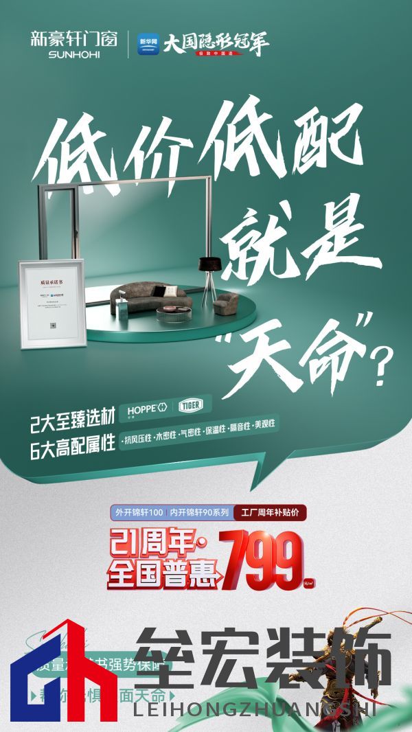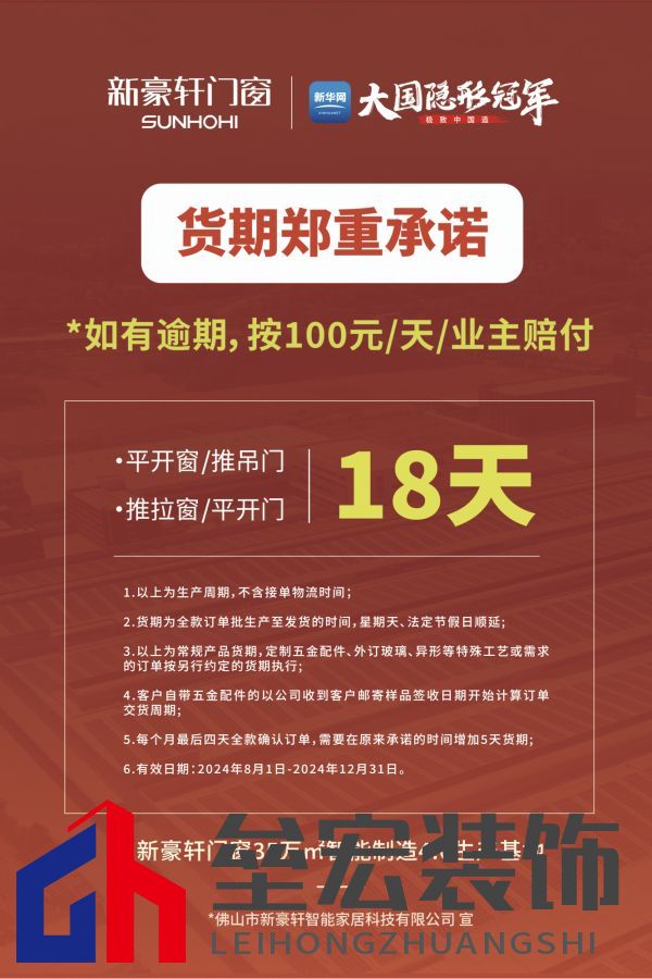 03.智造讓實(shí)惠 質(zhì)效雙保障 品質(zhì)好窗為何只賣(mài)799元?低價(jià)產(chǎn)品是否會(huì)有好物?不要擔(dān)心,新豪軒為你揭曉好窗的鉅惠密碼。 不同于“低價(jià)低配”路線,新豪軒開(kāi)啟“智造讓利”模式。新豪軒背靠亞洲航母級(jí)門(mén)窗生產(chǎn)基地,采用數(shù)智化軟硬件設(shè)備 + 精益化高效管理模式,從根本上實(shí)現(xiàn)降本增效,形成良性生產(chǎn)循環(huán),從而持續(xù)性地讓利消費(fèi)者。 在降價(jià)不降配同時(shí),新豪軒還用“兩大首發(fā)”消費(fèi)者提供質(zhì)效雙保障:獨(dú)家首發(fā)的《質(zhì)量承諾書(shū)》圍繞產(chǎn)品用材、性能參數(shù)、質(zhì)保服務(wù)等消費(fèi)者關(guān)心的問(wèn)題作出明確承諾,讓工藝選材透明化、消費(fèi)保障書(shū)面化;行業(yè)首發(fā)的《貨期承諾書(shū)》列明系統(tǒng)窗生產(chǎn)周期僅需18天,大大提高了整體交付效率,讓消費(fèi)者更快用上好門(mén)窗。