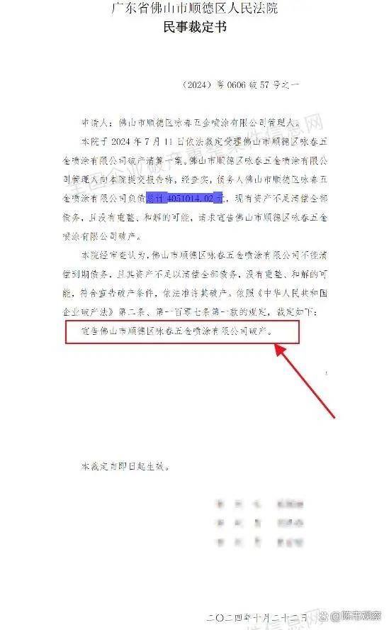 | 據(jù)消息顯示,佛山市順德區(qū)人民法院日前發(fā)布公告,以旗下資產(chǎn)無法覆蓋全部債務(wù)、且明顯不具備償債能力為由,裁定宣告佛山市順德區(qū)詠春五金噴涂有限公司(下稱“詠春五金”)破產(chǎn)。2024年7月11日,法院依法受理了關(guān)于“詠春五金”的破產(chǎn)申請(qǐng),并指定了資產(chǎn)管理人。經(jīng)資產(chǎn)管理人核定,詠春五金已確認(rèn)的負(fù)債額總計(jì)為4051014.02元人民幣,但其旗下資產(chǎn)已不足以償還全部債務(wù),且不具備償債能力、亦無和解之可能,符合破產(chǎn)條件。根據(jù)相關(guān)法律規(guī)定,佛山市順德區(qū)人民法院于2024年10月24日裁定宣告詠春五金破產(chǎn)。  自此,這家運(yùn)作了17年的五金工廠徹底成為歷史,一批產(chǎn)業(yè)工人因此而失業(yè),著實(shí)令人唏噓。讓人想不到的是,一家注冊(cè)資金本僅有5萬元的五金企業(yè),最終負(fù)債竟高達(dá)400多萬,而隨著詠春五金的破產(chǎn),這筆債務(wù)可能再無化解的可能了。 公開資料顯示,詠春五金于2007年注冊(cè)成立,距今已有17年時(shí)間。詠春五金的主營業(yè)務(wù)為生產(chǎn)制造五金制品、電器零配件等產(chǎn)品的。雖然詠春五金的規(guī)模并不大,但其能連續(xù)運(yùn)營17年,足以說明其產(chǎn)品得到了市場(chǎng)的驗(yàn)證和認(rèn)可。  然而,隨著內(nèi)外形勢(shì)的快速轉(zhuǎn)變,這家運(yùn)作17年的五金工廠最終走到破產(chǎn)的地步。在其破產(chǎn)之前,詠春五金已被列入“經(jīng)營異?!薄ⅰ笆疟粓?zhí)行人”名錄,處境之艱難由此可見一斑。 在業(yè)內(nèi)人士看來,由于受到下游需求持續(xù)萎縮等因素的影響,五金類制造業(yè)正面臨全方位挑戰(zhàn),曾經(jīng)“訂單接到手軟”的場(chǎng)景也一去而不復(fù)返,多數(shù)企業(yè)因訂單急速減少而陷入困難,減產(chǎn)、關(guān)停等情況屢見不鮮。在這個(gè)大背景下,一些大型五金制造企業(yè)憑借技術(shù)實(shí)力、資金充裕、市場(chǎng)和產(chǎn)品線多元化等優(yōu)勢(shì),尚且可以保住市場(chǎng)份額,而中小微企業(yè)則處于苦苦支撐狀態(tài),稍有不慎將難以為繼。  此外,由于詠春五金的管理者缺乏對(duì)市場(chǎng)形勢(shì)的客觀判斷,導(dǎo)致其陷入盲目擴(kuò)張的陷阱,進(jìn)而導(dǎo)致其資金鏈完全斷裂,經(jīng)營難以為繼,負(fù)債400多萬則是詠春五金盲目擴(kuò)張最好的證明,而資不抵債是詠春五金盲目擴(kuò)張后所必然需要承擔(dān)的后果。  總的來看,詠春五金的破產(chǎn)已成為既定事實(shí),難以改變。對(duì)于詠春五金的債權(quán)人來說,如何最大程度挽回?fù)p失,或成了最重要的問題。 來源:陳市觀察返回搜狐焦點(diǎn)首頁,查看更多 |