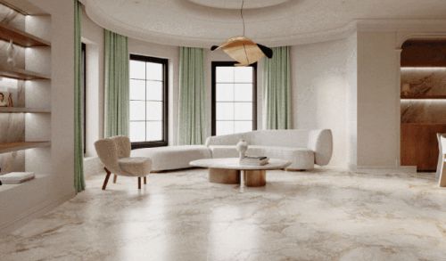 ??六大珍稀石材紋理,源于宋人藏珍的生活雅事,呈現(xiàn)出飄逸輕奢、靈動雅致的空間; ??取自宋代藝術品的素雅色彩,獨具詩意風雅的韻味,舒緩寧靜; ??深刻墨水打造的6°微光光感,精致逼真,刷拋工藝還原珍稀石材的肌理感,讓觸感更細膩。