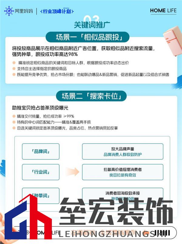 ??在2024年的尾聲,家享生活行業(yè)即將迎來一場規(guī)模、聲量與優(yōu)惠力度均超越往年的歲末營銷!在國家補貼與消費刺激政策的加持下,淘寶天貓聯(lián)合品牌投入60億,配合推出覆蓋90余個品類的多重優(yōu)惠,層層激活消費人群換新購新需求,穩(wěn)居家電市場銷售規(guī)模首位。雙12、圣誕、元旦節(jié)日接踵而至,必將出現(xiàn)更加火爆的銷售熱潮,為商家?guī)砩獗l(fā)的寶貴窗口期! ??阿里媽媽在今年天貓雙11重磅利好與產(chǎn)品升級的基礎(chǔ)上,持續(xù)加碼對商家的策略支持,搶先發(fā)布《家享生活行業(yè)經(jīng)營藍寶書》,從家享生活行業(yè)趨勢洞察、消費人群洞察出發(fā),結(jié)合領(lǐng)跑案例與「關(guān)鍵詞推廣」產(chǎn)品能力支持,幫助商家精準感知市場風(fēng)向、深度掌握經(jīng)營密碼,迅速起量,穩(wěn)步創(chuàng)收! ??家享生活行業(yè)趨勢洞察 ??圍繞「家享生活行業(yè)」市場趨勢與需求升級,解碼國補政策下家享行業(yè)市場機遇,引導(dǎo)商家在歲末前夕提前布局、盡早規(guī)劃,通過重要品類交叉滲透與場景化組合,在銷售窗口期迅速對接消費群體心智。
