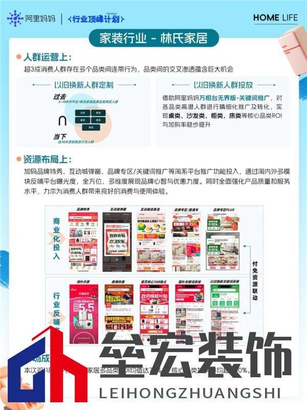 ??林氏家居: ??以舊換新人群科學(xué)定制:5-10年內(nèi)平臺/品牌品類購買人群&近30天目標(biāo)類目行為人群。 ??借助阿里媽媽萬相臺無界版-關(guān)鍵詞推廣,對各品類高潛人群進行精細化推廣及轉(zhuǎn)化,桌類、沙發(fā)類、柜類、床類等核心品類ROI與加購率穩(wěn)步提升。