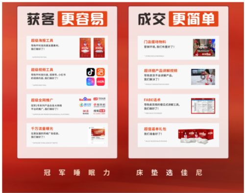 ?全域營銷生態(tài) 破解終端流量困局? 面對線下流量萎縮的行業(yè)痛點,佳尼構(gòu)建"線上引爆+線下承接"的全域營銷體系。 在線上端,總部抖音代運營團隊為經(jīng)銷商提供定制化內(nèi)容服務(wù):每月產(chǎn)出30條爆款視頻模板,結(jié)合同城精準(zhǔn)流量扶持,實現(xiàn)單店月度曝光量超500萬次。柳州經(jīng)銷商通過"探店短視頻+直播間滿減券"組合拳,線上引流成交額達70-90萬/月。長沙宅美家商場數(shù)據(jù)顯示,5款核心床墊產(chǎn)品貢獻90%年度銷售額。更通過"爆品組合包"模式,實現(xiàn)8款床墊、5款軟床、4款沙發(fā)的場景化天津唯尚一品門店年提貨200萬元。