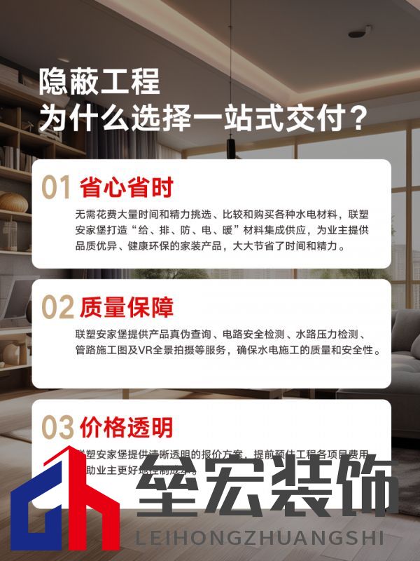 ??同時,聯(lián)塑安家堡從售前 - 售中 - 售后提供全方位五星服務。在前期規(guī)劃階段,專業(yè)團隊會根據(jù)業(yè)主需求,制定最適合的方案,規(guī)劃核心點就是選對服務團隊,而聯(lián)塑無疑是最佳選擇。聯(lián)塑憑借多年的行業(yè)經(jīng)驗,對隱蔽工程有著深刻的理解,能夠精準把握業(yè)主需求。在施工過程中,嚴格按照標準執(zhí)行,切實解決各種家裝隱蔽工程難題。即使在售后,若出現(xiàn)任何問題,聯(lián)塑的專業(yè)售后團隊也會及時響應,迅速處理。這種全方位的服務,讓家裝實現(xiàn)省時、省心、省力,真正做到讓業(yè)主無憂。