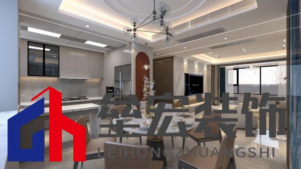 ??廚房為開放式設(shè)計(jì),這樣空間更大,廚房與餐廳相接處為吧臺(tái)設(shè)計(jì),人少時(shí)可以在吧臺(tái)上吃早點(diǎn),吧臺(tái)也可以作為廚房緩沖的中島臺(tái),廚房做出的飯菜可以通過(guò)吧臺(tái)過(guò)度到餐桌。 ??餐廳為圓桌,南北寬度比東西要大,所以酒柜考慮在北面窗戶處,這樣不會(huì)影響圓餐桌的擺放,餐廳背景墻兩側(cè)為護(hù)墻板,中間采用大理石奢石,猶如一副抽象畫,高端且優(yōu)雅。