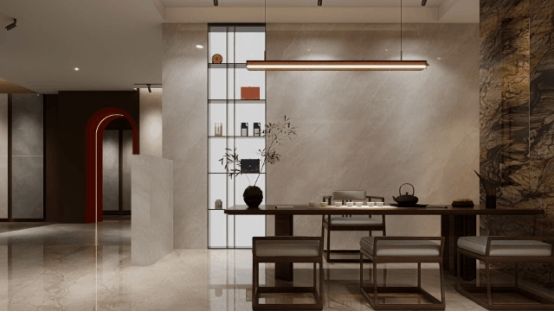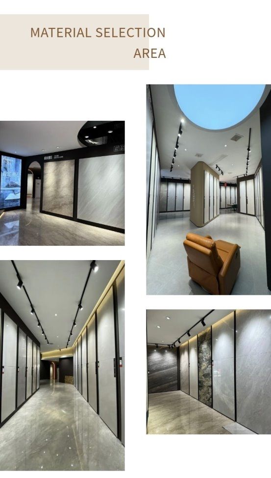 空間賞析 SPACE TO ENJOY 設(shè)計(jì)師團(tuán)隊(duì)深度洞察流行趨勢,將最具市場前瞻性的大紋理產(chǎn)品陳列呈現(xiàn)于展廳核心展區(qū),通過專業(yè)燈光設(shè)計(jì)與場景化鋪貼,讓每處紋理都成為空間的視覺焦點(diǎn)。