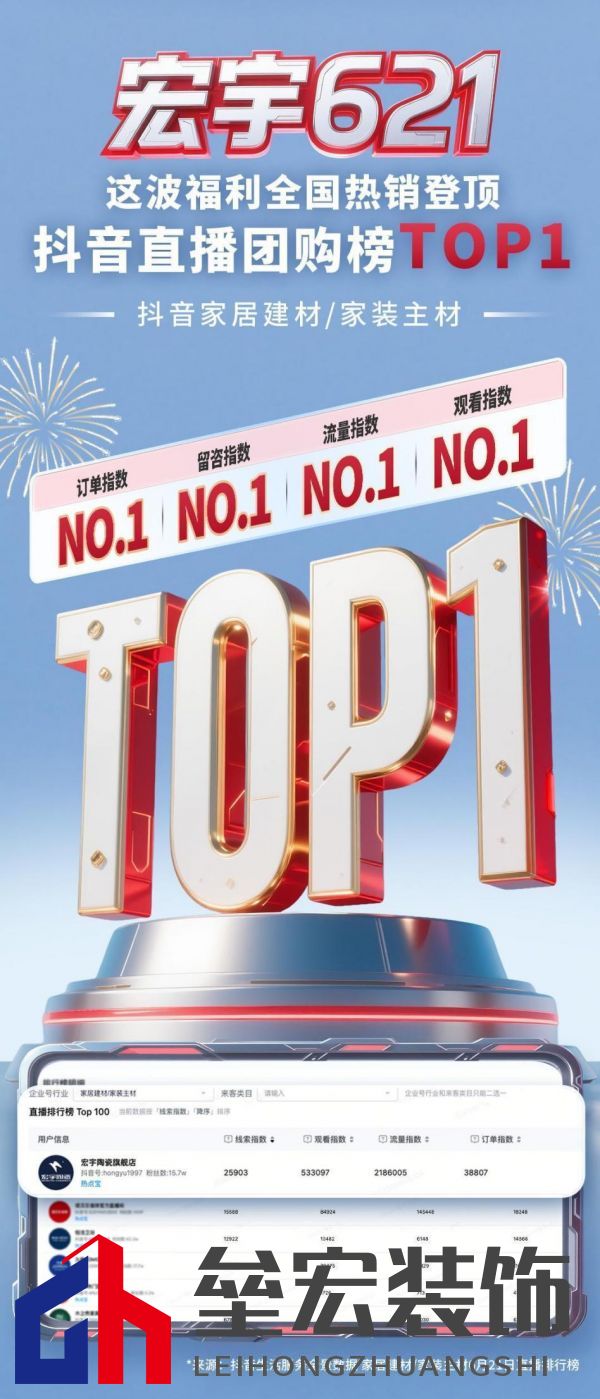 ??宏宇621這波福利活動全國熱銷登頂,持續(xù)爆單直播間,強勢拿下抖音直播團購榜TOP1。