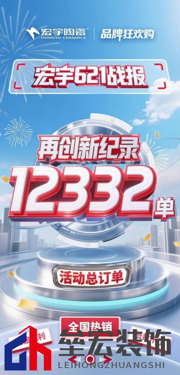 ??宏宇陶瓷618期間再創(chuàng)新紀(jì)錄12332單,總訂單數(shù)同比增長138%!品牌增長勢頭強勁,用戶活躍度創(chuàng)新高!本次活動實現(xiàn)全網(wǎng)總曝光3550萬,總曝光次數(shù)797萬,累計總場觀119萬,抖音短視頻總曝光1753萬!
