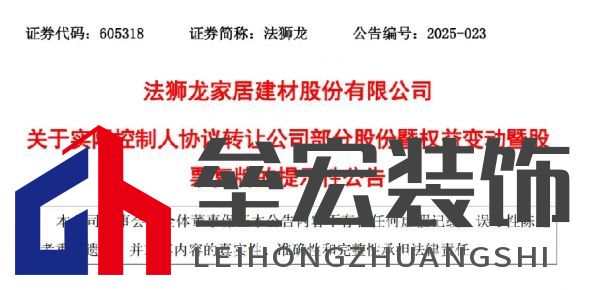? ? ? ? 7月28日星期一,停牌僅一天后,法獅龍家居建材有限公司(605318)控股權(quán)結(jié)構(gòu)調(diào)整方案火速出爐,控股股東法獅龍投資控股有限公司罕見(jiàn)大手筆協(xié)議轉(zhuǎn)讓超過(guò)25%股權(quán),引入產(chǎn)業(yè)背景深厚的屹華山匯作為戰(zhàn)略投資者,交易總額高達(dá)8.46億元。新股東組合不僅斥巨資入場(chǎng),更通過(guò)精密的“表決權(quán)委托+一致行動(dòng)”安排,確保屹華山匯擁有強(qiáng)大話語(yǔ)權(quán)。目前法獅龍股票已于7月29日復(fù)牌。