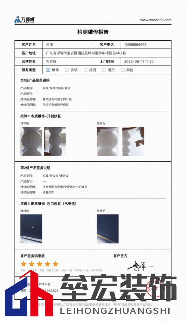 值得一提的是,服務完工后,系統(tǒng)將自動生成發(fā)布萬師傅《檢測維修報告》,清晰呈現(xiàn)故障原因與修復方案,同時明確服務進程、服務時間和完工效果等具體細節(jié),賦能品牌方全面深入了解產(chǎn)品,反哺產(chǎn)品設計優(yōu)化升級。 據(jù)悉,萬師傅《檢測維修報告》為行業(yè)首創(chuàng),第一次將維修服務數(shù)據(jù)化、書面化、流程化,極大提升維修行業(yè)的標準化程度,增強服務確定性,消除信任隱憂。