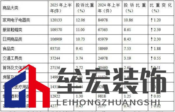 | 8月6日,中國消費(fèi)者協(xié)會(huì)發(fā)布“2025年上半年全國消協(xié)組織受理投訴分類基本情況”。 商品大類投訴數(shù)據(jù) 根據(jù)各商品大類投訴數(shù)據(jù),家用電子電器類、房屋及建材類投訴量均進(jìn)入所屬投訴類別的前十位。其中,家用電子電器類投訴量居首位,達(dá)120133件,投訴比重為12.06%,與2024年同期相比投訴比重上升1.2%。房屋及建材類投訴量居第七位,為14995件,投訴比重為1.51%,與2024年同期相比上升0.04%。 服務(wù)大類投訴數(shù)據(jù) 根據(jù)2025年上半年服務(wù)大類投訴數(shù)據(jù),房屋裝修及物業(yè)服務(wù)投訴量居第九位,為10042件,投訴比重為1.01%,與2024年上半年相比投訴比下降0.32%。 具體商品投訴 在具體商品投訴中,家具投訴量為19760件,與2024年同期相比上升36.79%。 |