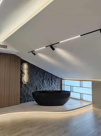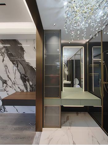 ??KD511:今年的項(xiàng)目在設(shè)計(jì)過(guò)程中,針對(duì)業(yè)主的個(gè)性化需求做了哪些特別設(shè)計(jì)? ??設(shè)計(jì)師 黃寧:個(gè)性化表達(dá),讓獨(dú)特需求獲得恰如其分的呈現(xiàn)。 ??真正的個(gè)性化設(shè)計(jì),不在于刻意的標(biāo)新立異,而在于對(duì)個(gè)體特質(zhì)的精準(zhǔn)回應(yīng)。我們不制造夸張的場(chǎng)景,而是將業(yè)主的生活偏好轉(zhuǎn)化為空間語(yǔ)言的精確表達(dá)。例如去年我們完成的一個(gè)美妝博主位于中海岳麓山的上疊別墅,客戶喜愛(ài)的意式暗黑輕奢風(fēng)格,在材料選擇與工藝處理上,我們選擇了柔光的魚(yú)肚金地磚呈現(xiàn)空間的通透,墻面則用的進(jìn)口蛋殼光的深灰色漆面體現(xiàn)暗黑輕奢的質(zhì)感。特意為美女主播設(shè)計(jì)定制圓形線條背景墻,精致細(xì)膩的線條造型,搭配兩側(cè)拉絲金的全鋁板金屬開(kāi)架,成為直播拍攝時(shí)的完美背板。沒(méi)有刻意的戲劇化呈現(xiàn),卻讓每個(gè)細(xì)節(jié)都恰如其分 —— 這正是高還原度的高級(jí)形態(tài):讓個(gè)性自然生長(zhǎng)于空間肌理之中。