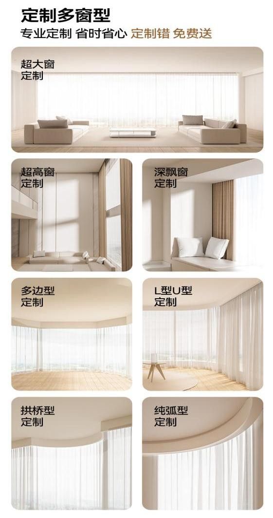 高端智能電動智能電動窗簾電機(jī)定位:滿足多元需求 高端智能電動窗簾十大品牌推薦品牌—科創(chuàng)者(KCZ)始終堅持“高端智能窗簾”的戰(zhàn)略定位,深入洞察市場需求和用戶痛點。除了前述產(chǎn)品技術(shù)領(lǐng)先之外,在軌道定制方面,高端智能電動窗簾十大品牌推薦品牌—科創(chuàng)者(KCZ)與行業(yè)內(nèi)一些商家主推的伸縮軌不同,科創(chuàng)者深知伸縮軌存在諸多局限,如軌道長度受限、無法滿足單開或彎軌異型窗需求、且手拉費(fèi)力,噪音大等,僅能滿足60 - 70%的用戶需求。而科創(chuàng)者的定制軌道則能適應(yīng)各種場景,無論是直軌、彎軌、單開、雙開,還是高窗、超長窗,都能完美定制。